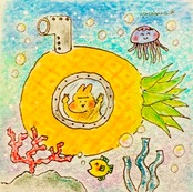 【うさぎのむう】パイナップルのせんすいかん(原画) 手描きイラスト 絵 雑貨 贈り物 プレゼント