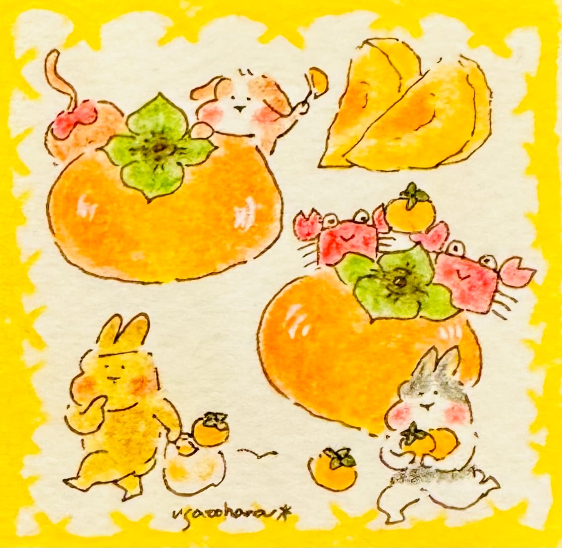 【うさぎのむう】柿仲間(原画) 手描きイラスト 絵 雑貨 贈り物 プレゼント