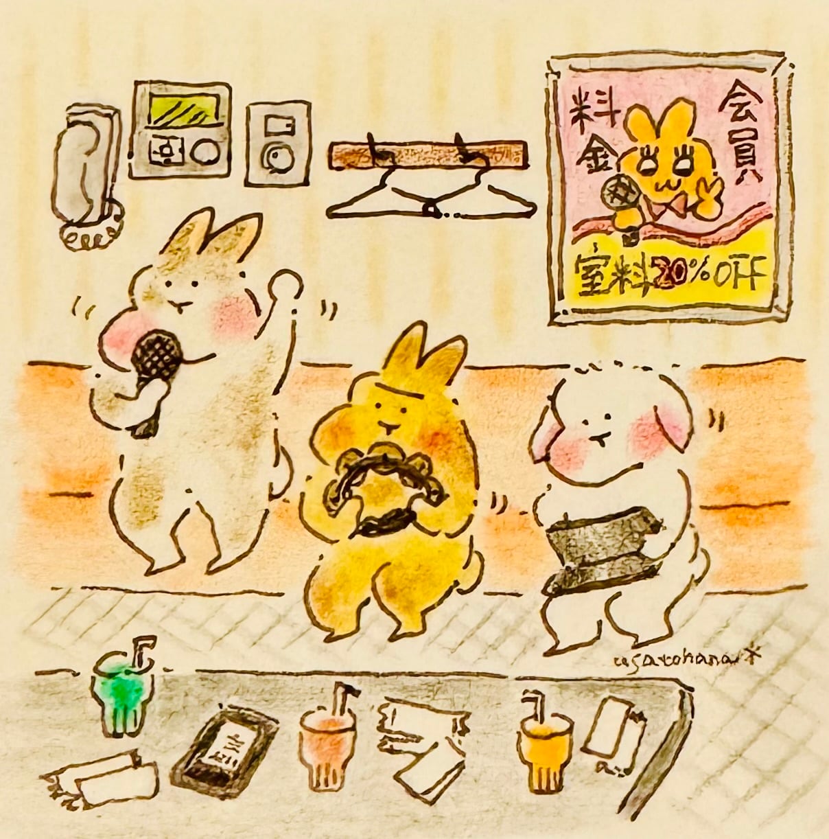 【うさぎのむう】フリータイムドリンクバー付き(原画) 手描きイラスト 絵 雑貨 贈り物 プレゼント | うさぎのむう【イラストと雑貨】