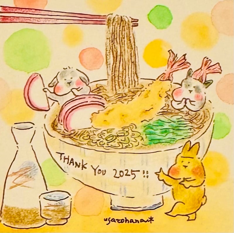 【うさぎのむう】Thank you 2025!!(原画) 手描きイラスト 絵 雑貨 贈り物 プレゼント