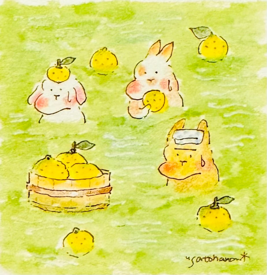 【うさぎのむう】ゆず湯でポカポカ(原画) 手描きイラスト 絵 雑貨 贈り物 プレゼント