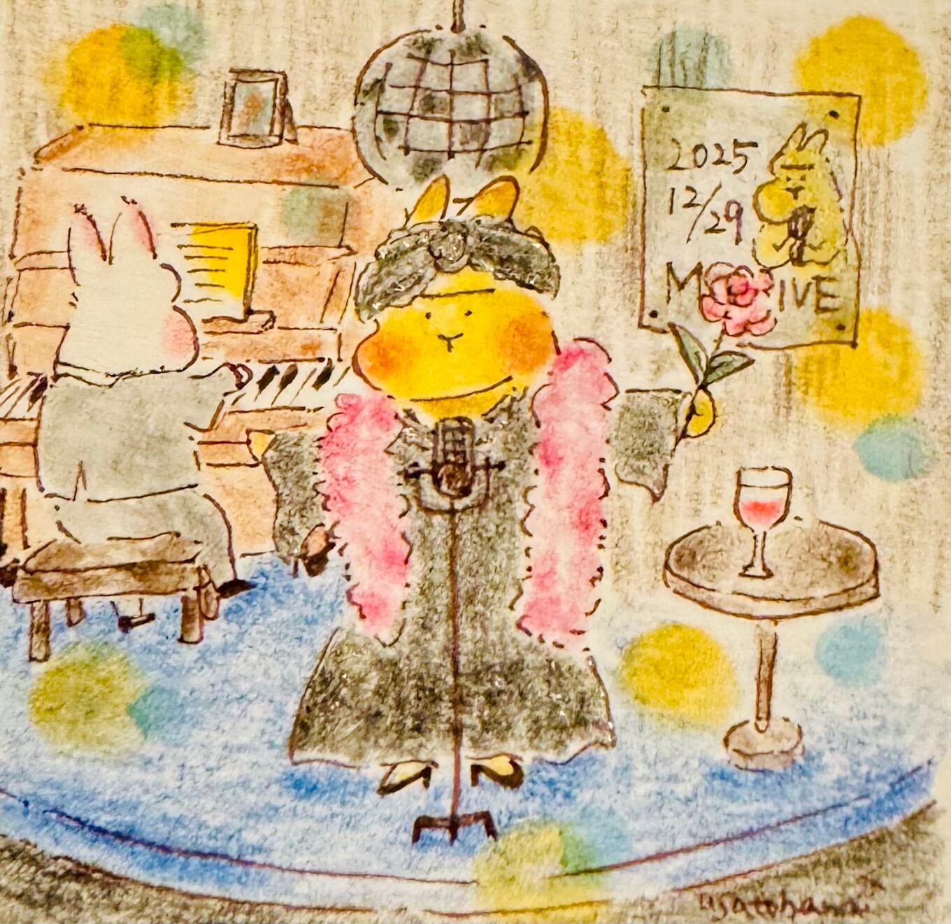 【うさぎのむう】Muu's chanson live(原画) 手描きイラスト 絵 雑貨 贈り物 プレゼント | うさぎのむう【イラストと雑貨】