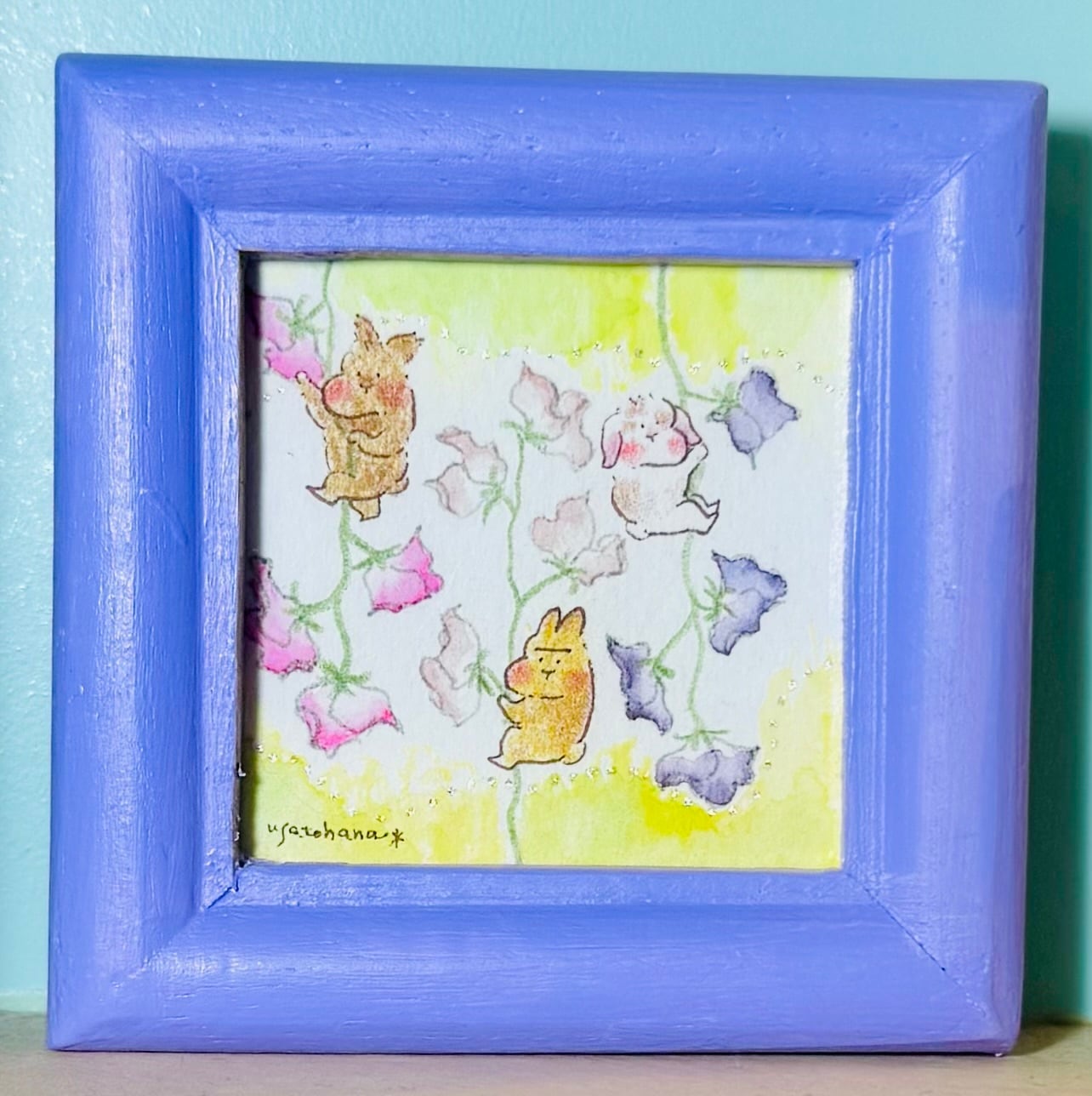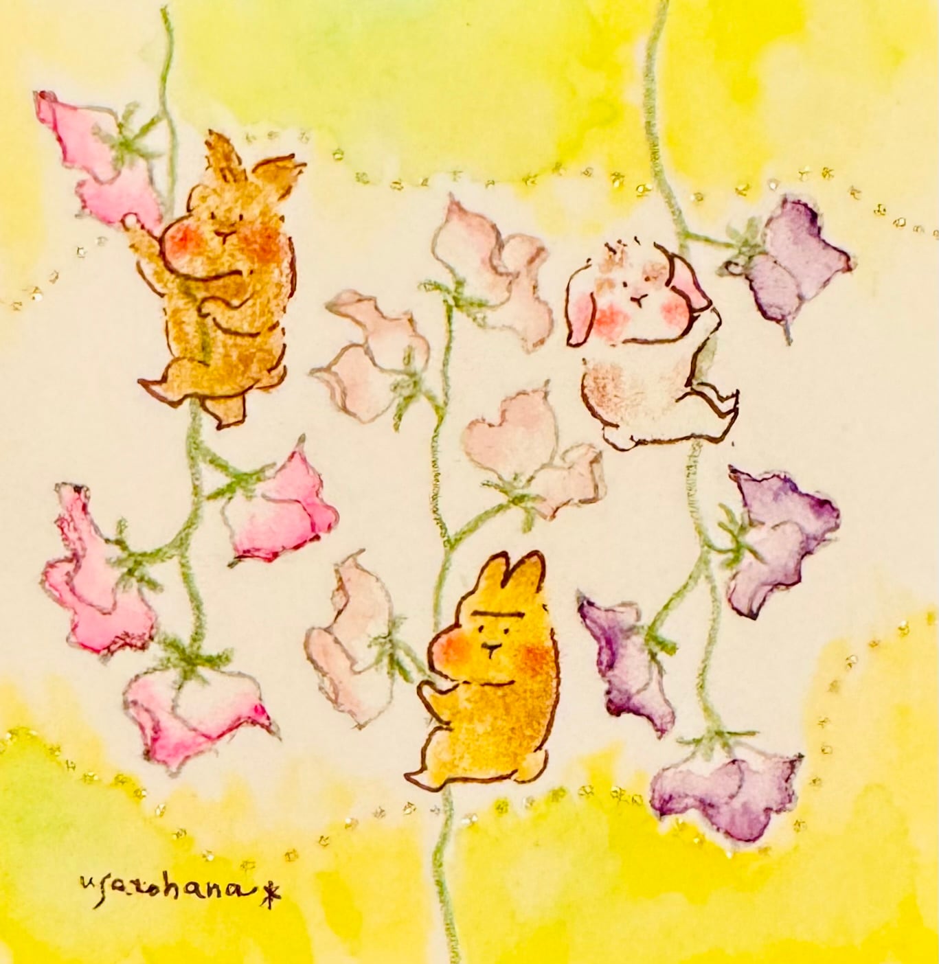 【うさぎのむう】スイートピー(原画) 手描きイラスト 絵 雑貨 贈り物 プレゼント | うさぎのむう【イラストと雑貨】