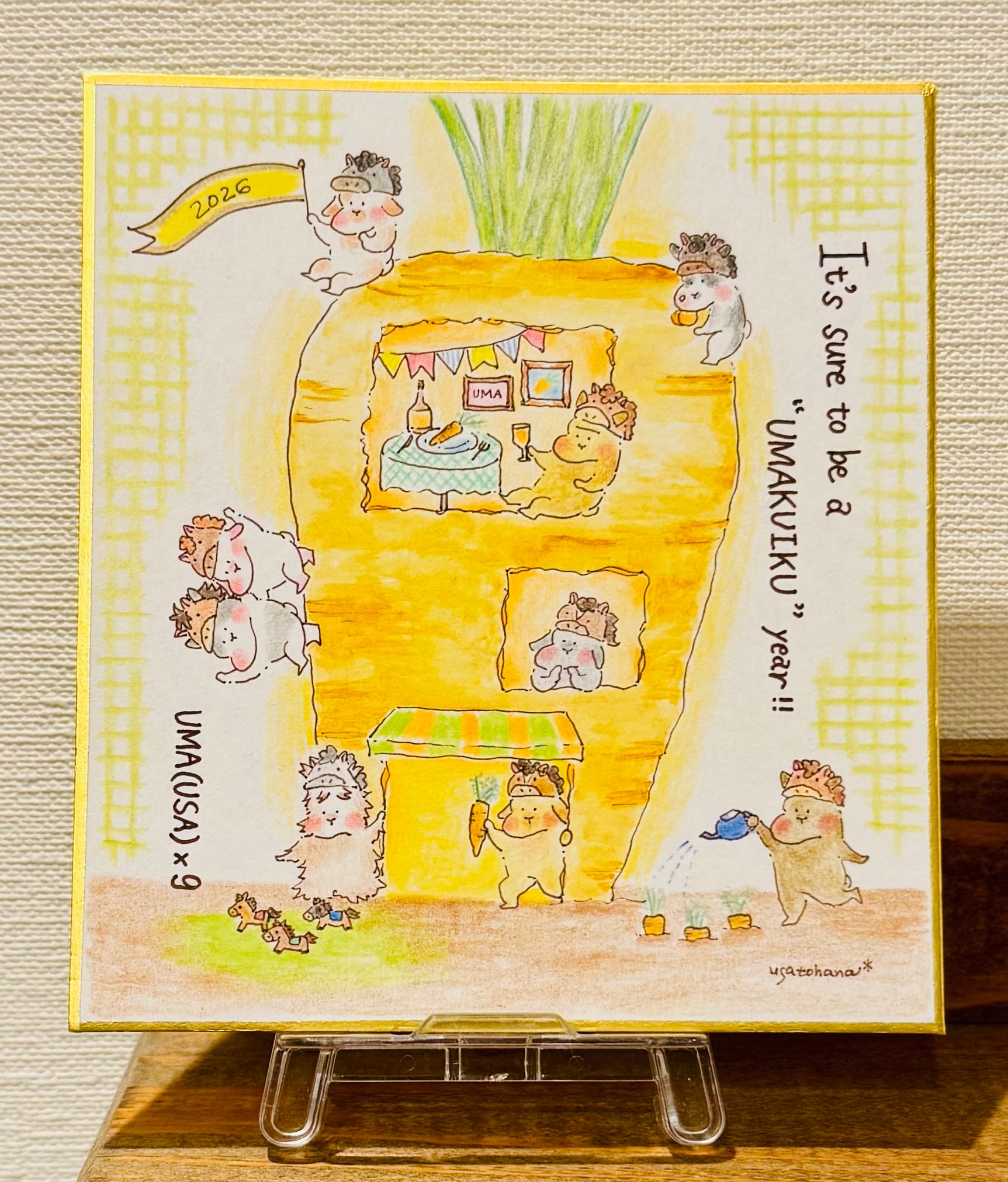【うさぎのむう】UMAKUIKU 2026(原画) 手描きイラスト 絵 雑貨 贈り物 プレゼント