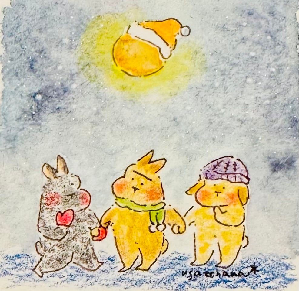 【うさぎのむう】冬の月は美しい(原画) 手描きイラスト 絵 雑貨 贈り物 プレゼント | うさぎのむう【イラストと雑貨】