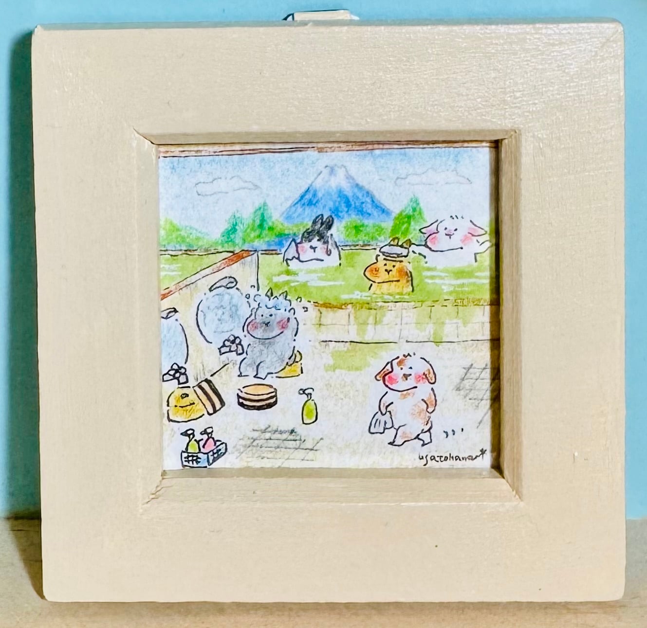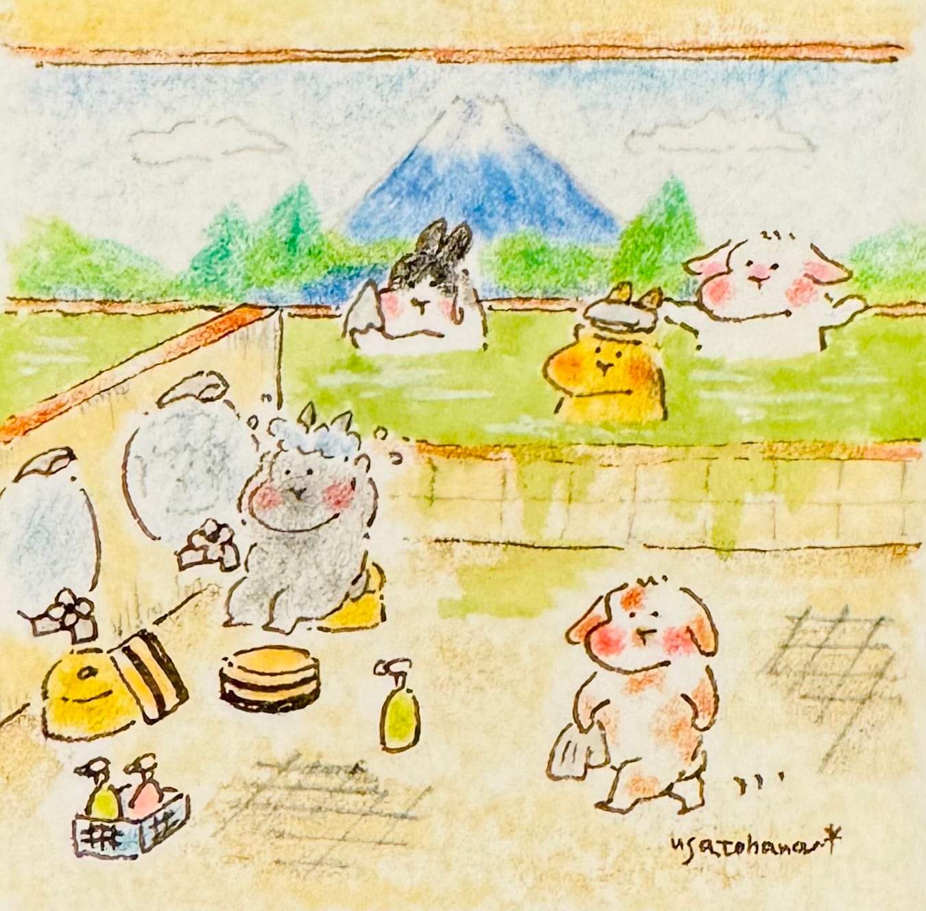 【うさぎのむう】いい湯だな(原画) 手描きイラスト 絵 雑貨 贈り物 プレゼント | うさぎのむう【イラストと雑貨】