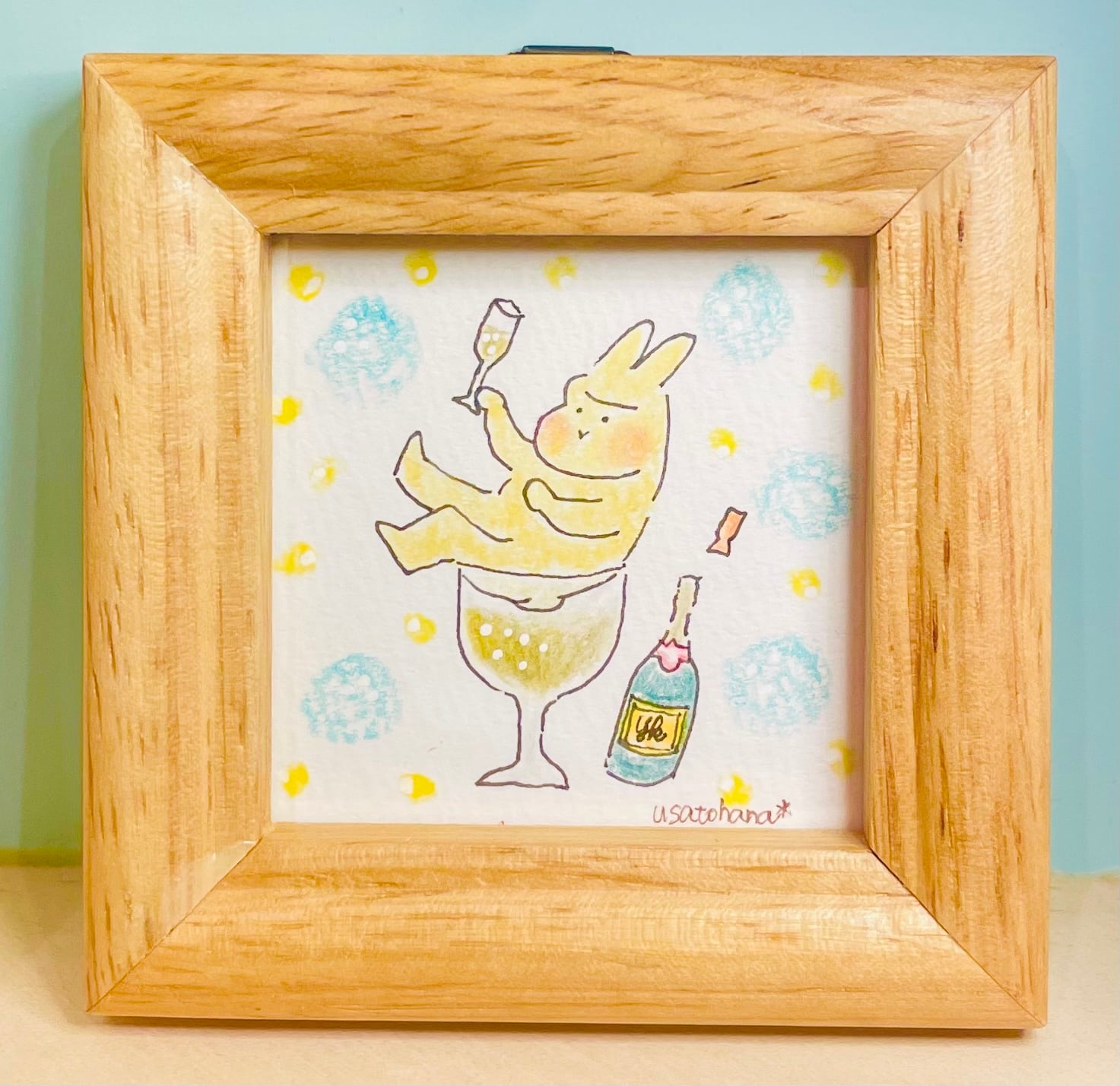 【うさぎのむう】乾杯(原画) 手描きイラスト 絵