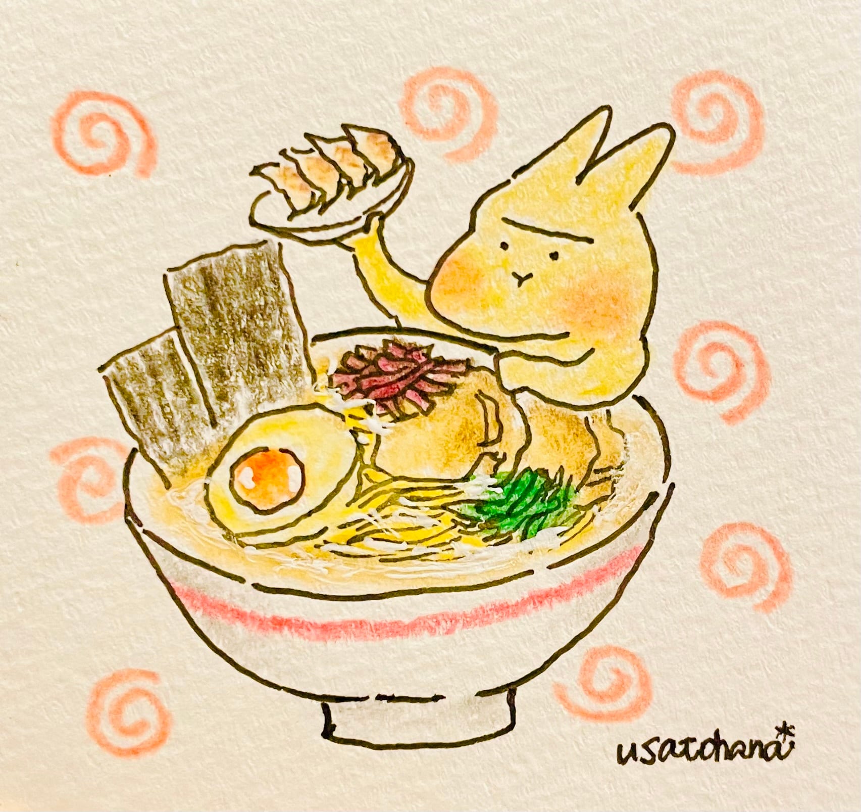 【うさぎのむう】ラーメン餃子セット(原画) 手描きイラスト 絵