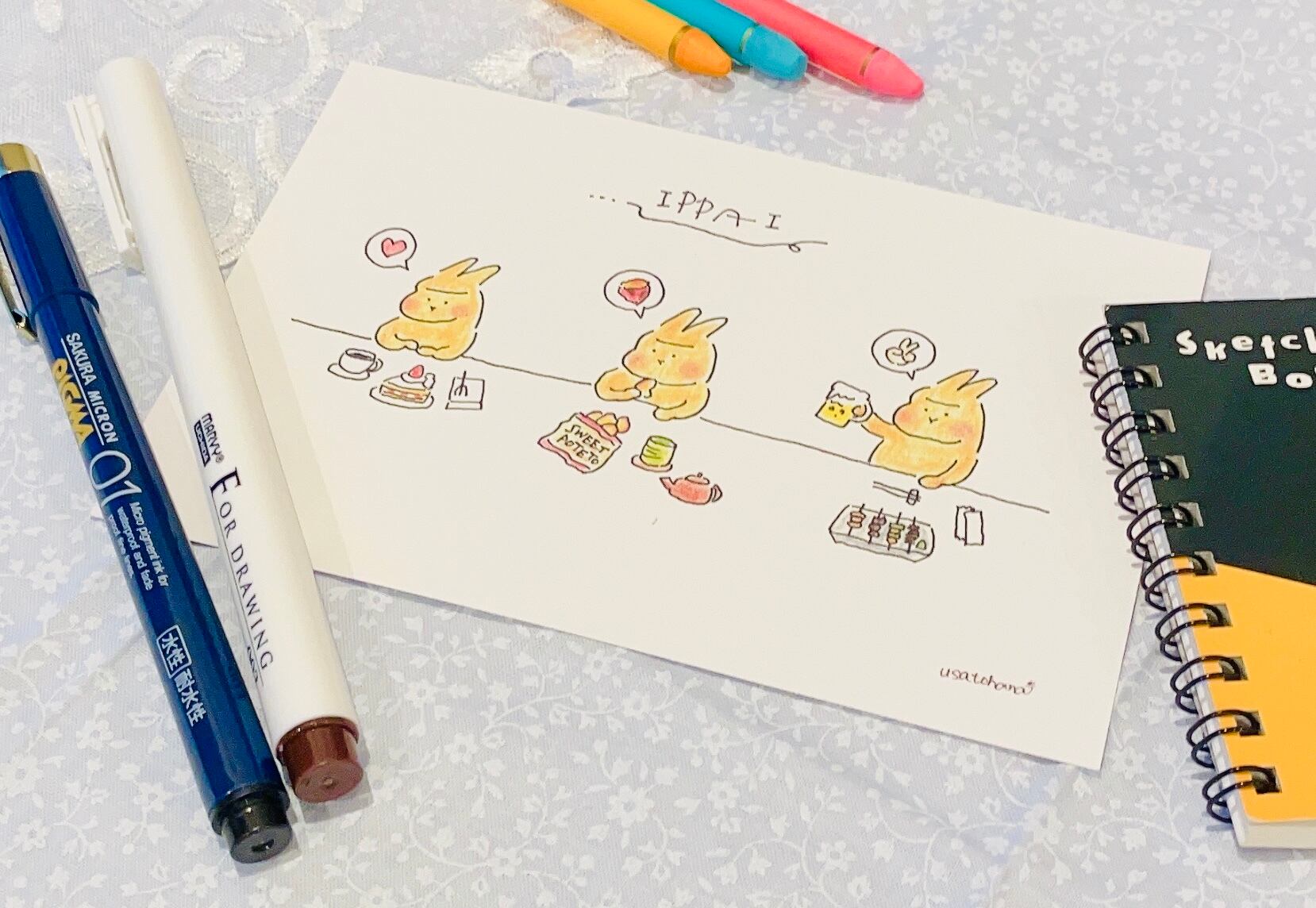 【うさぎのむう】一杯(ポストカード) 手描きイラスト 絵 雑貨 贈り物 プレゼント