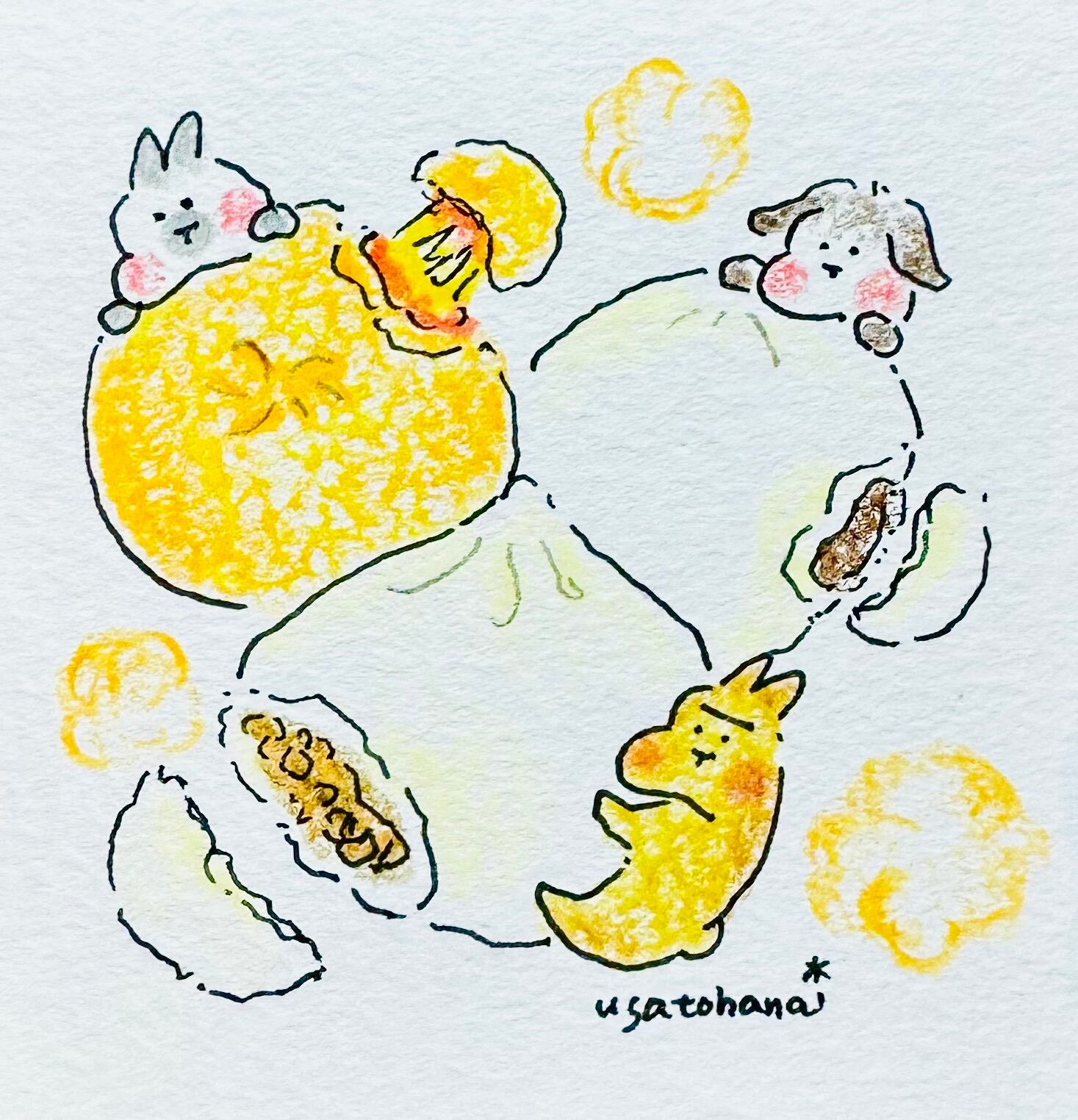 ※予約済み【うさぎのむう】中華まん(原画) 手描きイラスト 絵 雑貨 贈り物 プレゼント